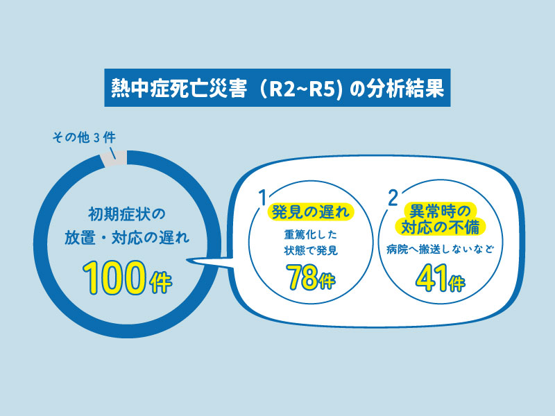 特に昨今、熱中症による死亡災害が増加し、初期症状の見逃し・対応の遅れが深刻化要因となっています。現場において、熱中症により死亡に至らせない(重篤化させない)ための適切な対策の実施が求められています。